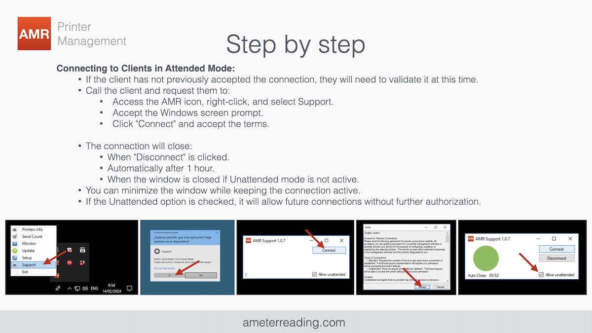 Important: In order to remotely access the AMR driver, end user must accept the connection and legal conditions.