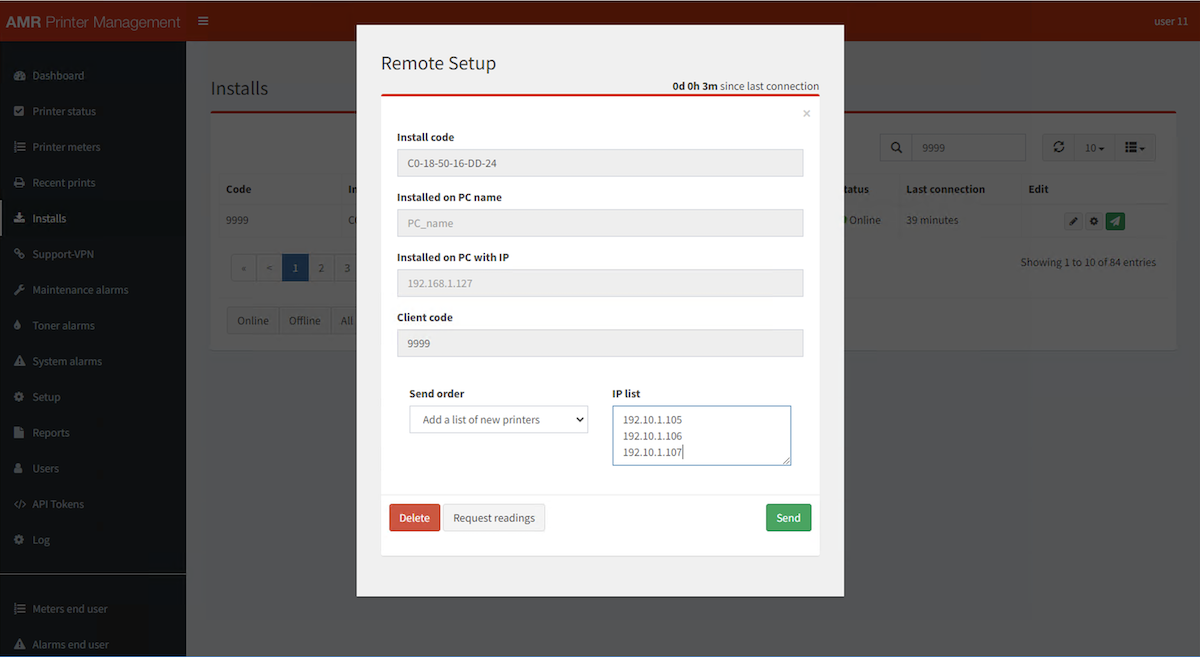 If the "Install code" checkbox is marked, this user will only have access to the printers associated with this installation. For example, if the client has multiple sites, a user might see only the printers from one site. Other users could see all the equipment associated with a client code, regardless of the location.