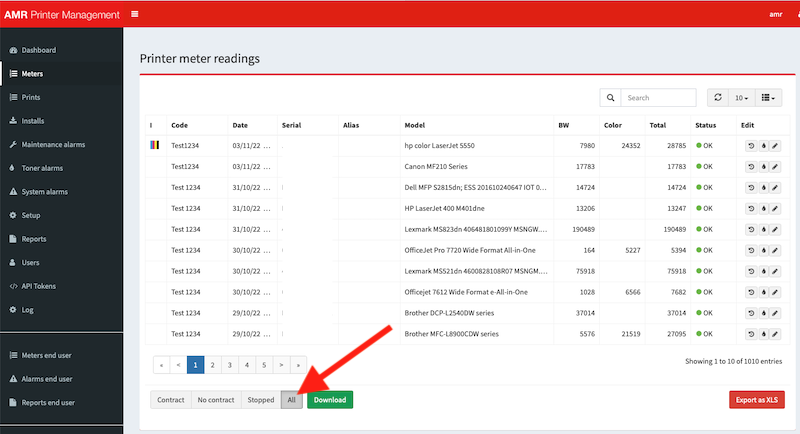 - Pegar en el navegador la url: http://127.0.0.1:5000/amr11.php?cmd=export_ip- Una vez acabado el proceso, aparecerá un fichero export_ip.csv en la carpeta C:/Driverprinter/import/
